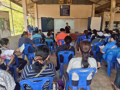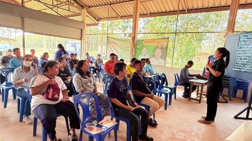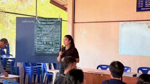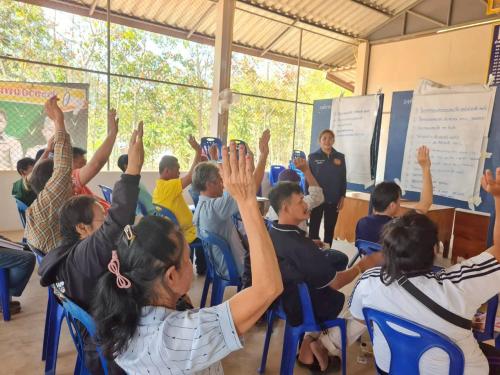 นางปราณี ก้อนเพ็ชร นักวิชาการพัฒนาชุมชนชำนาญการ ดำเนินโครงการทบทวน กำหนดทิศทาง และปรับแผนการพัฒนาหมู่บ้าน